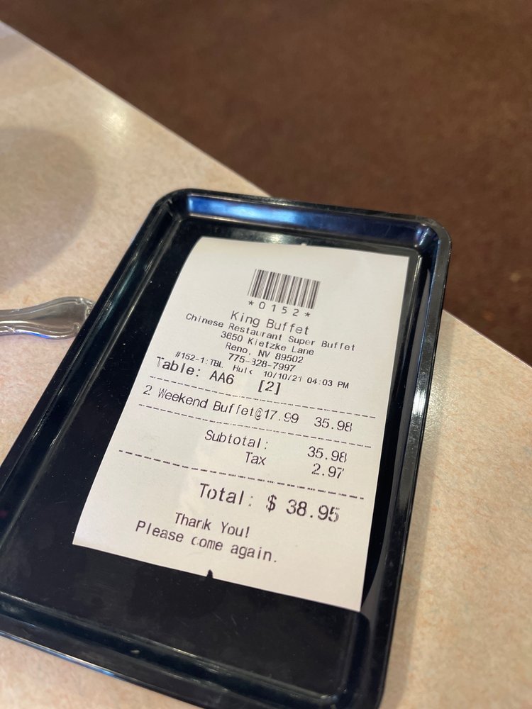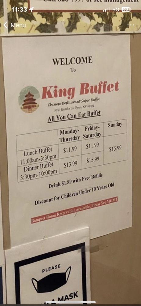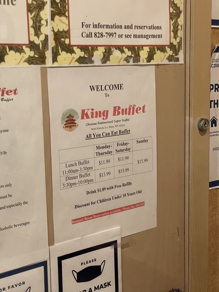 King Buffet is a casual dining spot in Reno, NV, offering a variety of Chinese cuisine and special combo options. The menu includes appetizers like Pot Sticker, BBQ Chicken Skewers, and Fried Wonton Crab Rangoon. Customers can enjoy Large or Medium Combo Specials with a selection of entrees, sides, and soup of the day. The restaurant provides delivery, takeout, and reservations, making it convenient for all. The ambiance is family-friendly with options for outdoor seating and private parking. With moderate noise levels, it's suitable for group gatherings and family meals. Despite mixed reviews, some customers have praised the affordable prices and attentive staff. Try out King Buffet for a taste of Asian flavors with good value for money.